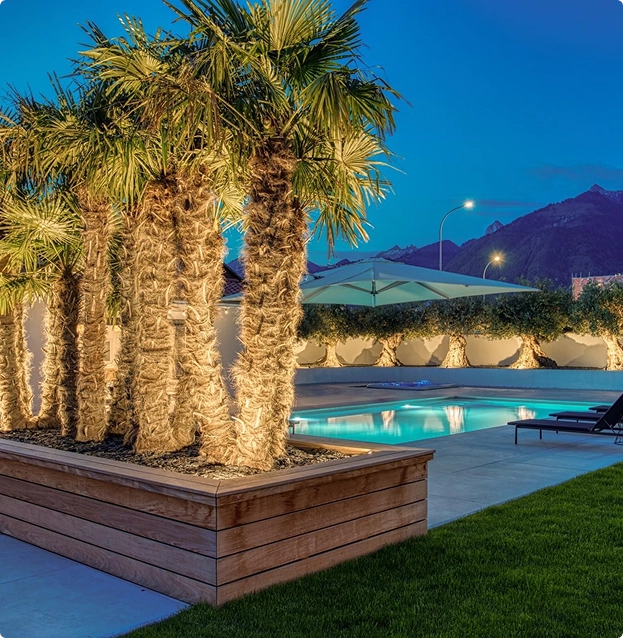 Au Garden Centre, nous ne nous occupons pas seulement de vos jardins et plantations : nous créons aussi vos espaces de détente avec des piscines extérieures sur mesure.
